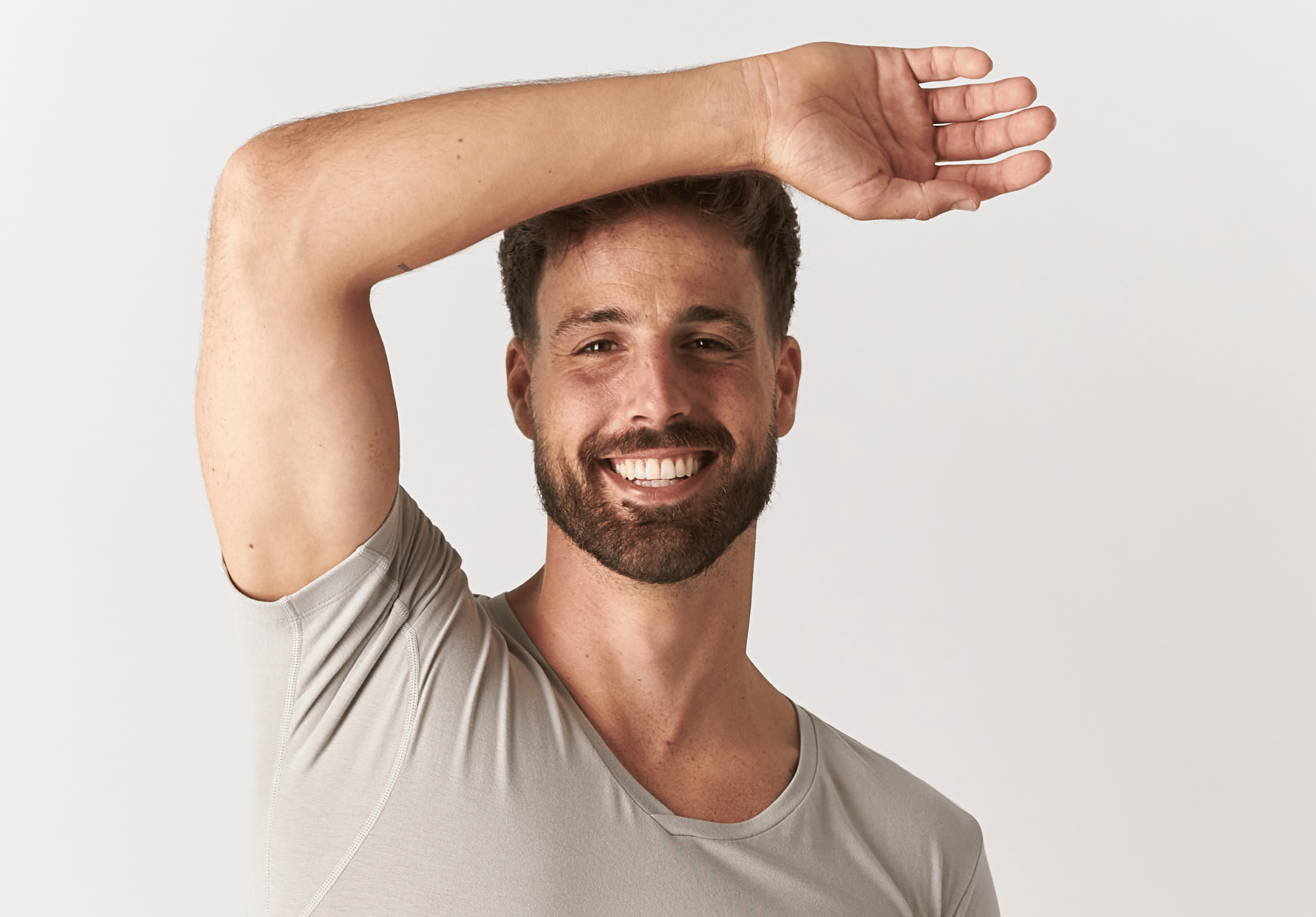 Only our t-shirts and undershirts have specified technology to actively block sweat stains as much as possible. They do so by absorbing sweat into the fabric, spreading it over a larger surface area, speeding up natural evaporation. You can sweat quite a lot before it's visible on the outside.
